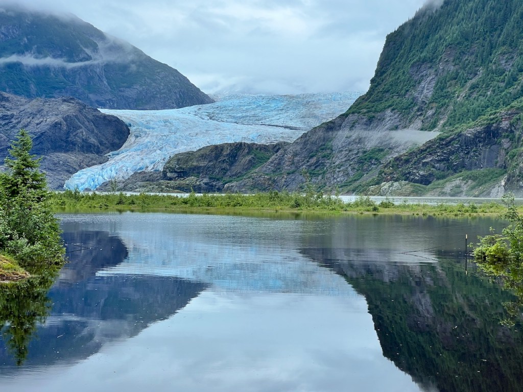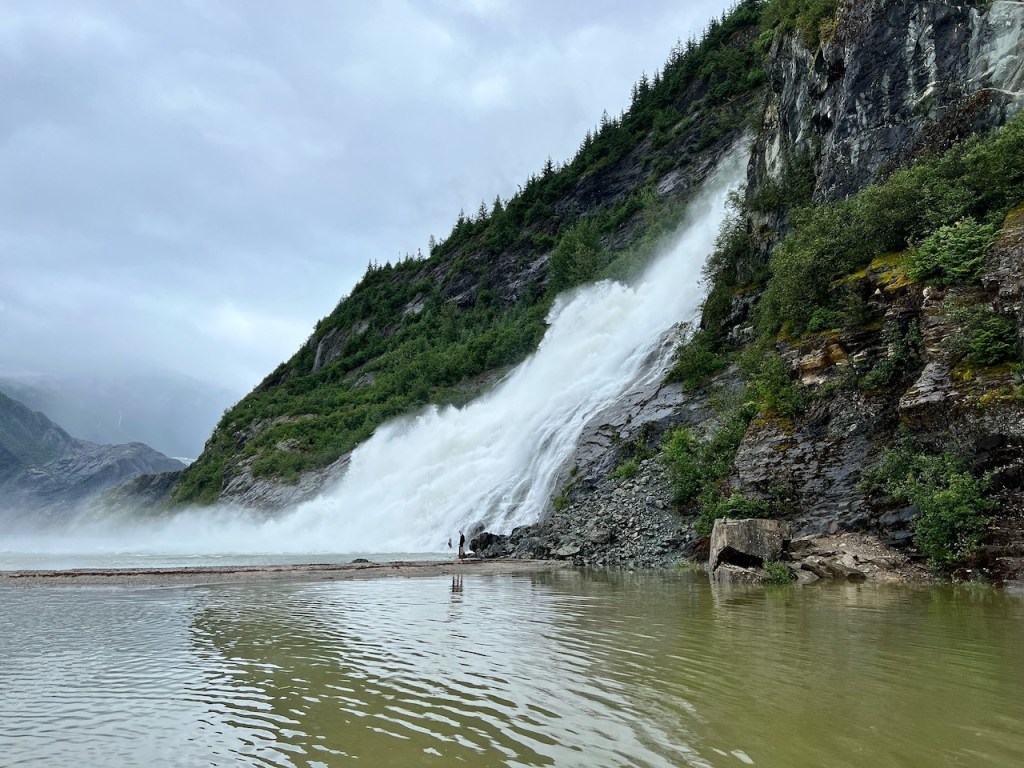 The next day, we stopped at Juneau, capital city of Alaska. Our first tour was a boat ride in the bay near Juneau. We were fortunate to see a lot of humpback whales and orcas. Post the boat ride, the next tour was to Mendelhall glacier and Nugget falls by bus. While Mendelhall glacier is quite close to the bus stop, Nugget falls is about 30 to 40 minutes walk. The walk is totally worth the views.
