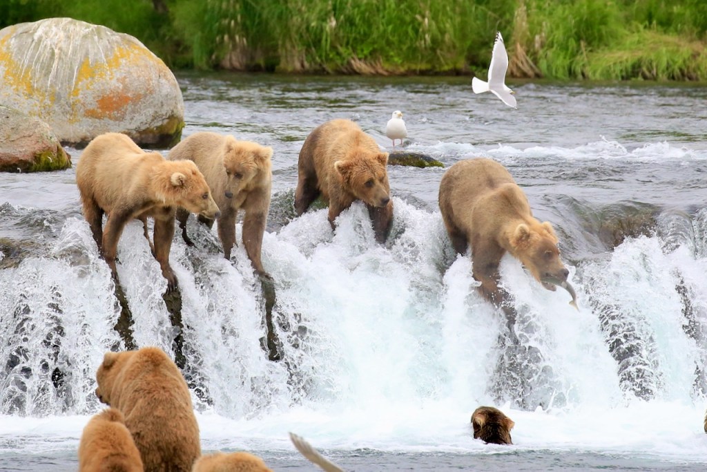 The sightings of bears catching salmon on top of the Brooks falls were just amazing. We would have loved to stay at Brooks Falls, but the accommodation there gets sold out about a year in advance.