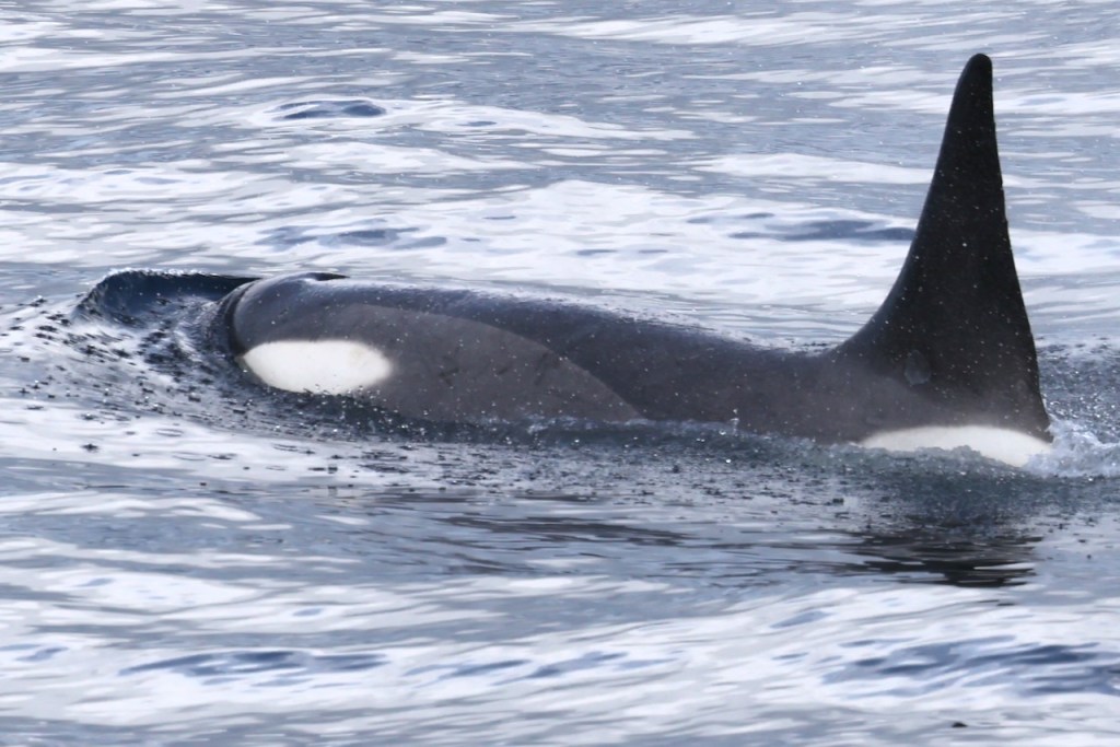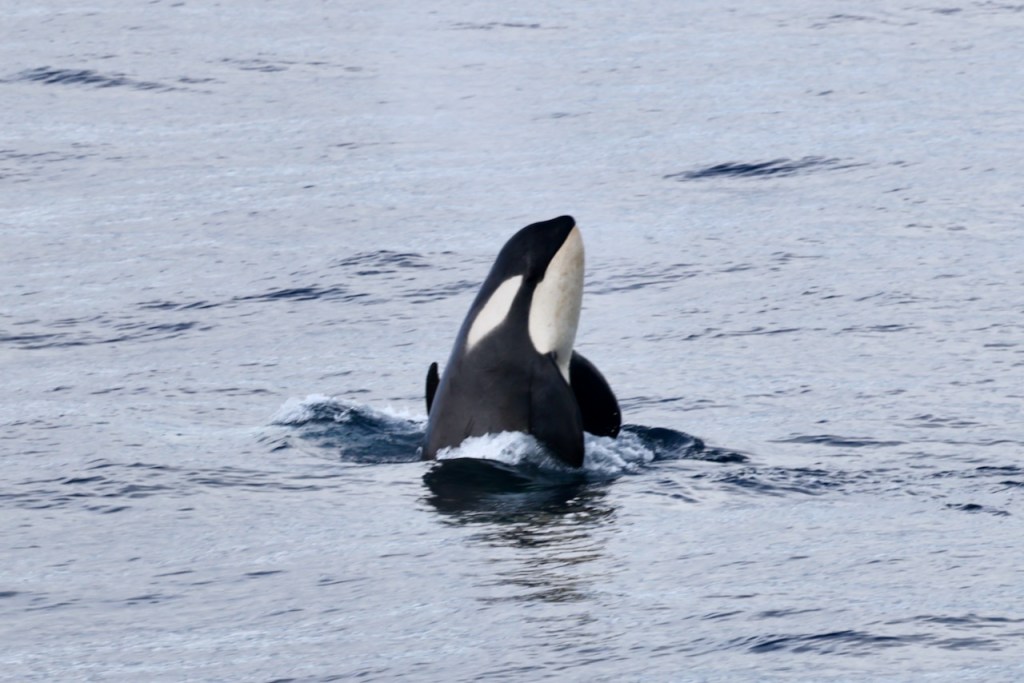 Towards the late evening, we saw another large pod of Orcas. We were quite lucky to capture a breaching whale.