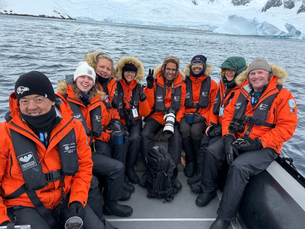 Day 6 of our journey was bright and sunny. We sailed south and reached Graham’s passage near Bluff Island. We had a nice Zodiac cruise and were lucky to see a calving of ice. A humpback whale did a dive quite close to our zodiac, which was amazing to see. The ice structures were awesome to watch.