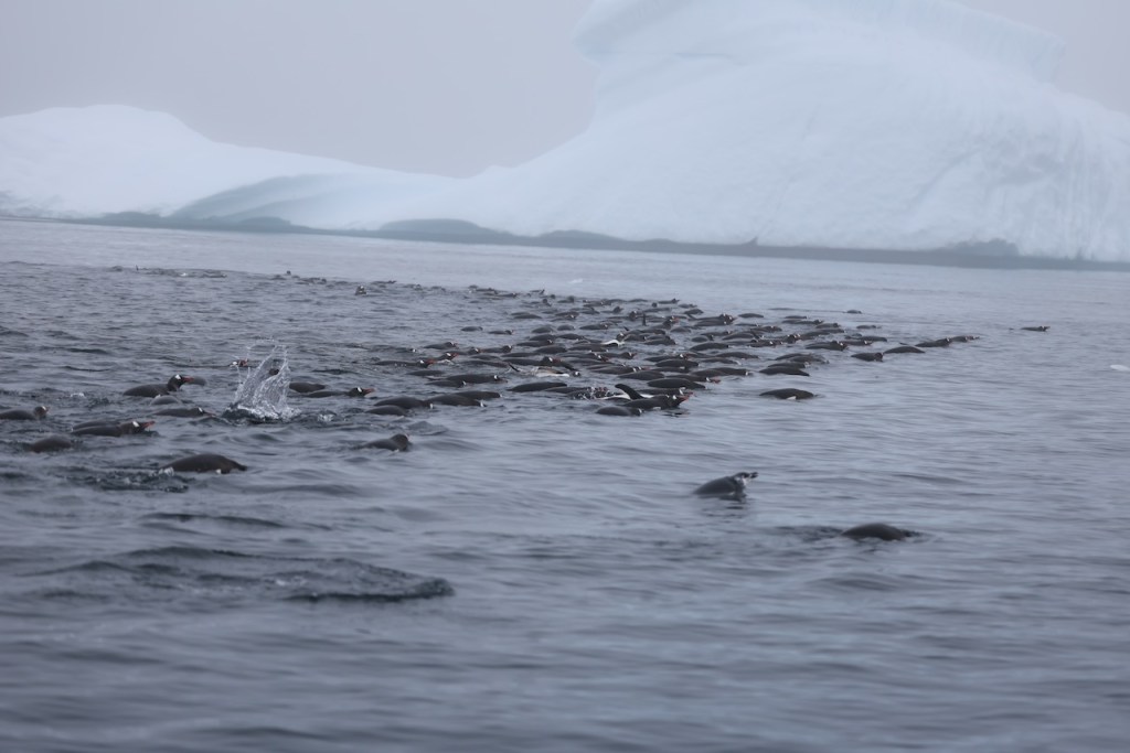 Later in the afternoon, we took a zodiac cruise. We were very lucky to watch both whales and penguins hunting for Krill.