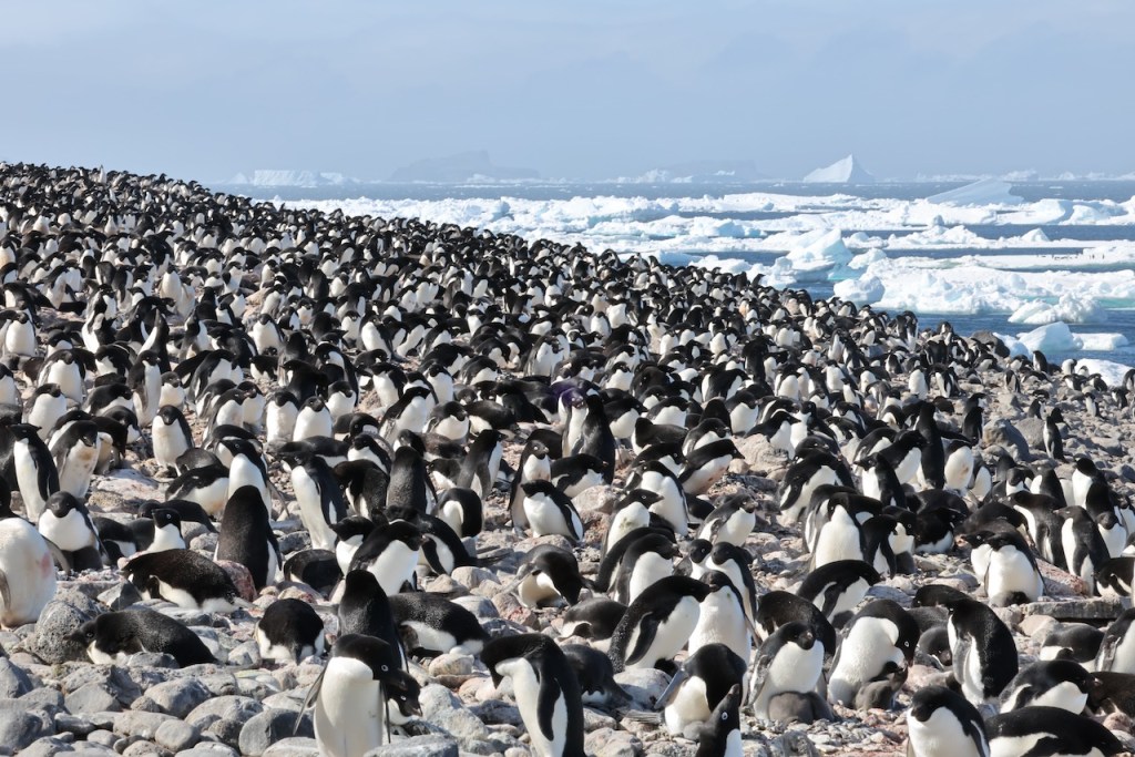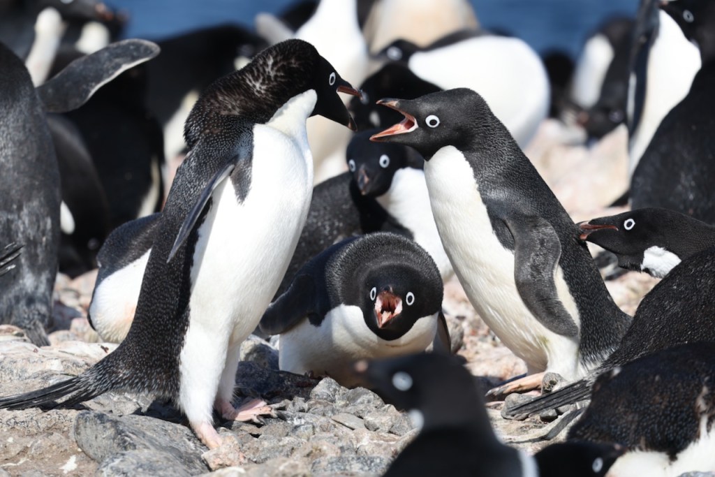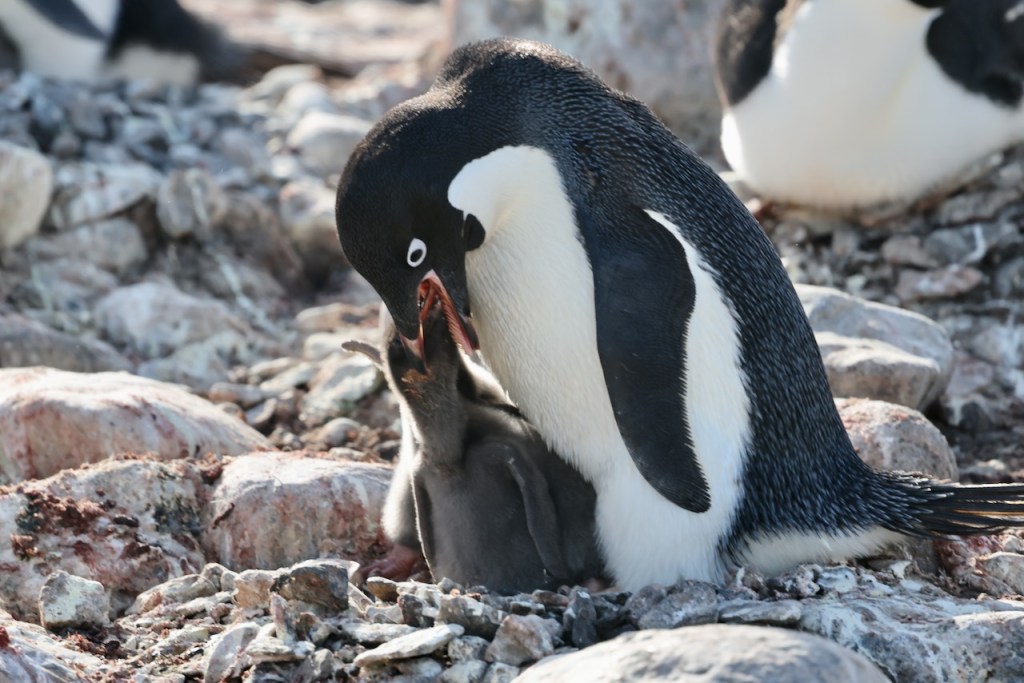 Later in the afternoon, we landed on Paulet Island, which has a huge colony of Adélie penguins. We had lovely sightings of parents feeding their chicks. A big fight broke out amongst some of the penguins, which was interesting to watch.