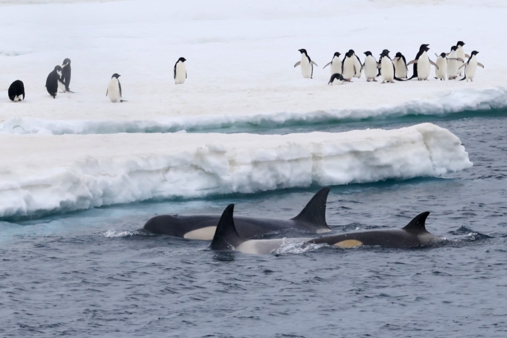 We sailed north in the evening to navigate on to the west side of the Antarctic peninsula. In the evening we saw a large pod of Orcas (killer whales) hunting penguins. It was an awesome sighting, with the penguins making a run in the Weddell sea.