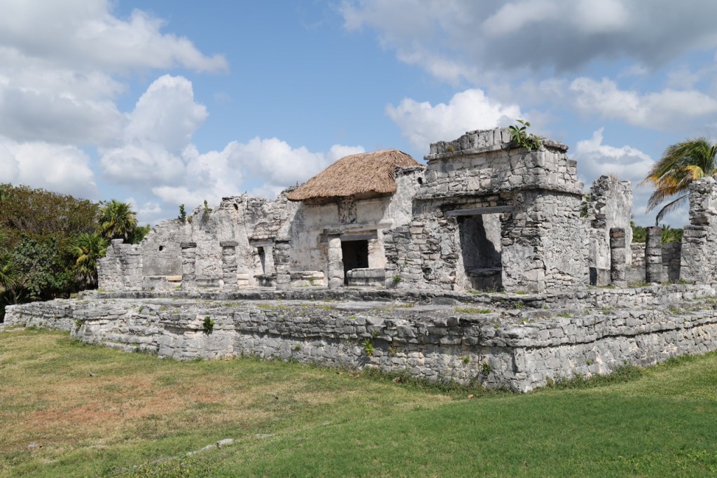 The ruins include El Castillo (The Castle), a prominent pyramid, and the Temple of the Frescoes, which was used for tracking the sun and conducting rituals.