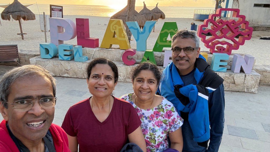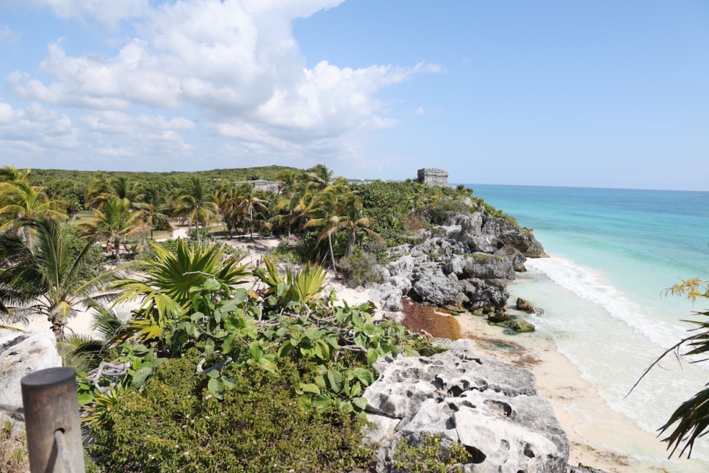 From Chichen Itza we drove to Playa del Carmen, which is about halfway between Cancun and Tulum. On our second day, we drove to Tulum and visited the Ruins. Tulum was a prominent Mayan port city on the Yucatán Peninsula, thriving between the 13th and 15th centuries as a crucial coastal trading hub for jade, turquoise, and honey. Perched on 12-meter cliffs, it is the only Mayan settlement built directly on the Caribbean coast, serving both religious, defensive, and navigational purposes.