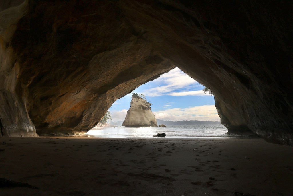 On day 9, we started with a short trek to Te Pare Point in Hahei. After breakfast, we took the “park and ride” shuttle to Grange Road in Hahei, from where we did the trek to Cathedral Cove. We got soaked in the rain, but fortunately the rain stopped when we reached Cathedral Cove. The area was not crowded and lovely to spend time in.