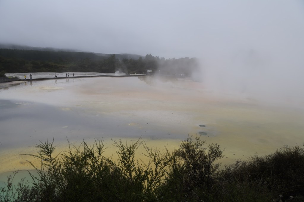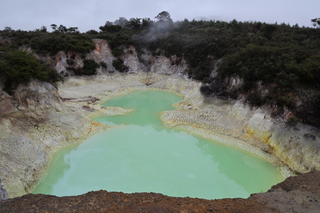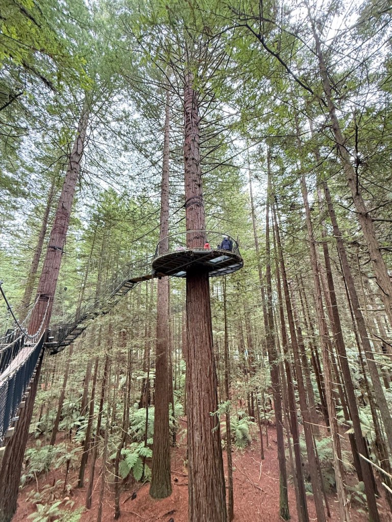 On day 7, we drove to Rotorua, which is home to lots of geothermal activity. Our first visit was to climb the Skyline, with great views from the top. We did the treetop walk among the California Redwoods, then walked around Kuirau Park (with a lot of hot pools, and geothermal activity) and lastly we visited the sulphur point.
