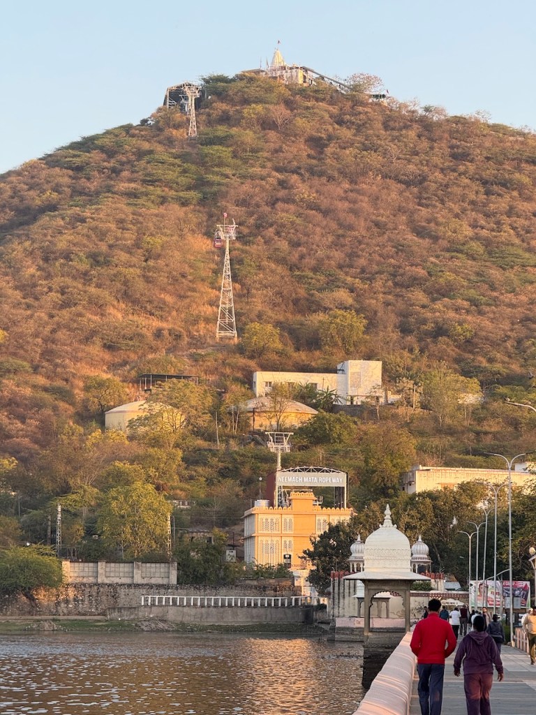 In the evening, we took a cable car to Neemach Mata temple. The temple is on top of a hill, with great views of Fateh Sagar Lake and the Aravalli mountains.