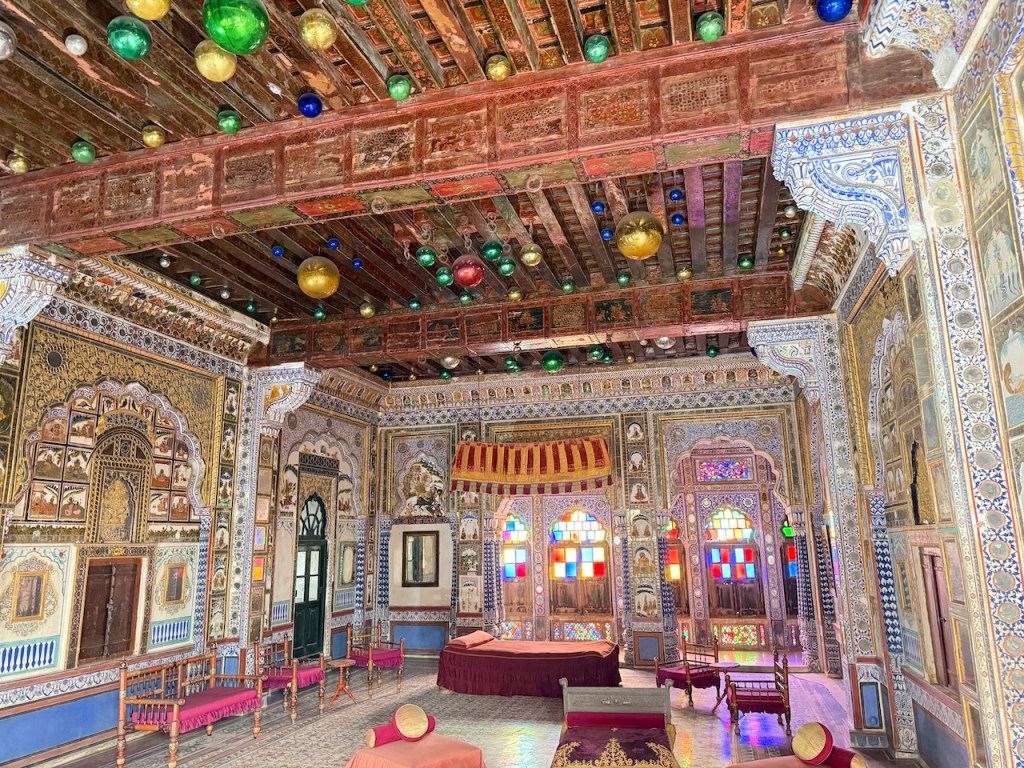 We spent 3 nights in Jaisalmer at Mandir Palace Hotel, which is located in the city centre. The Palace was built about 200 years ago, and has been transformed over generations. There are many ornate balconies, nice gardens, two museums and stone carvings.