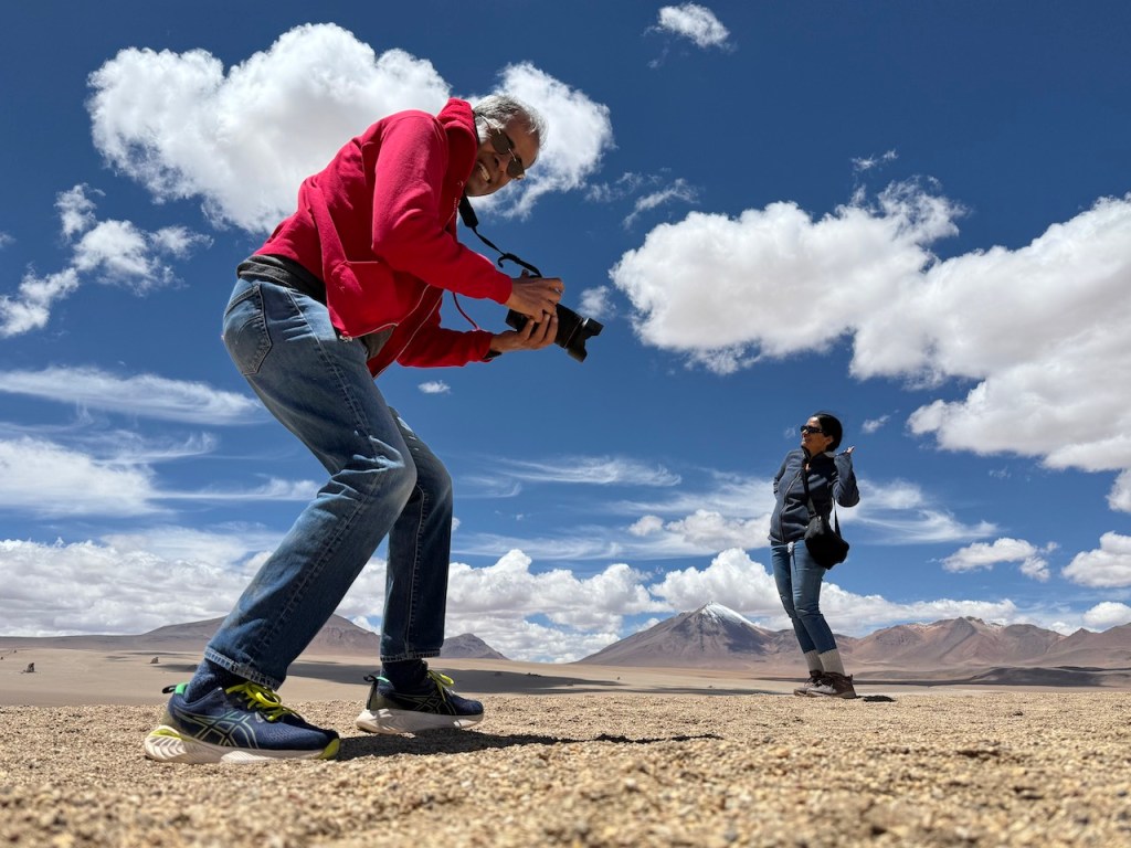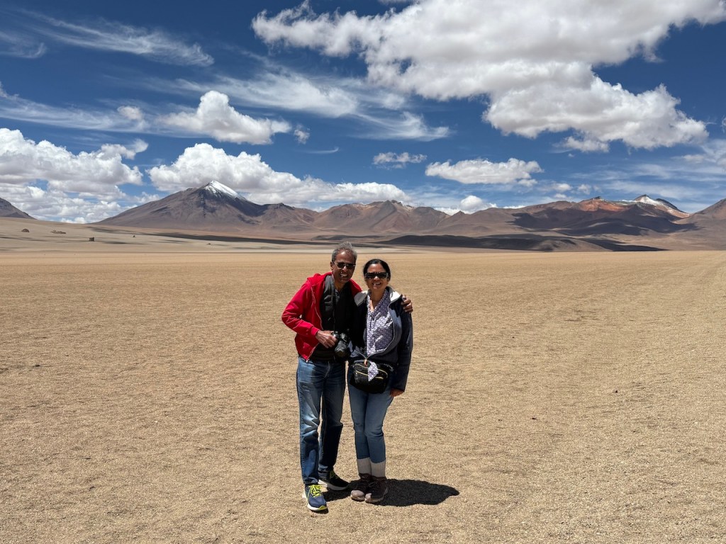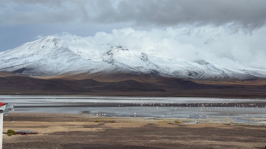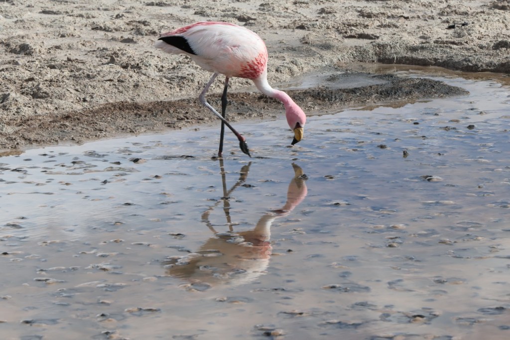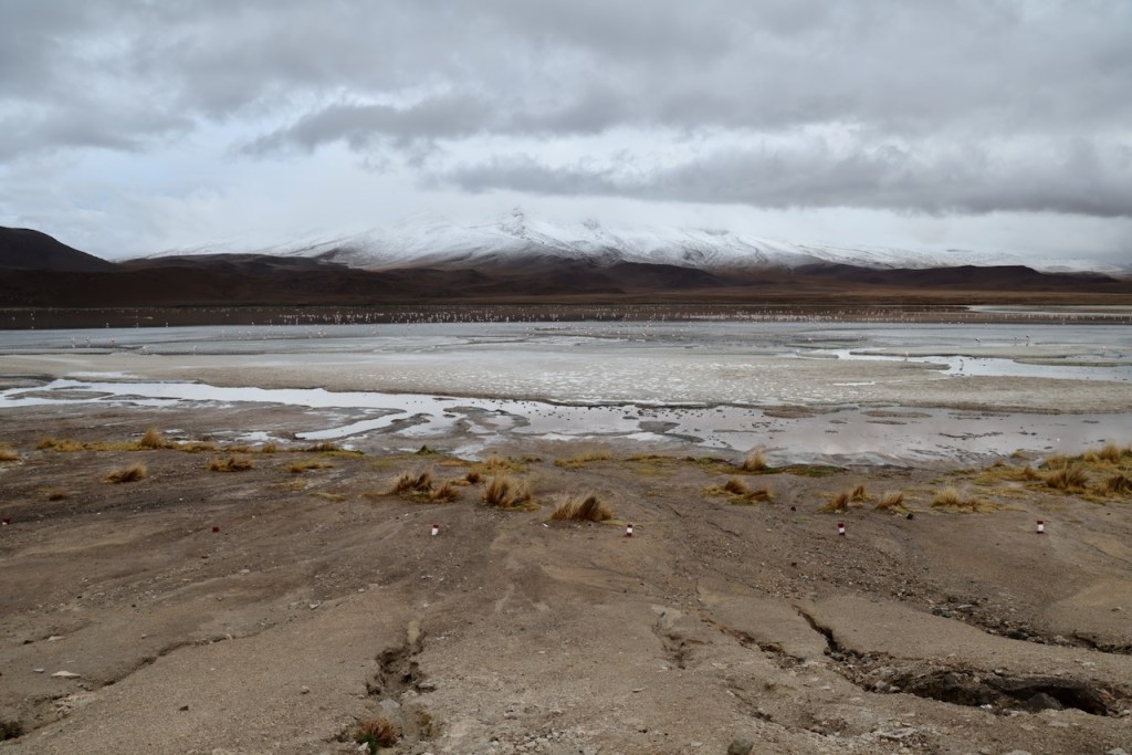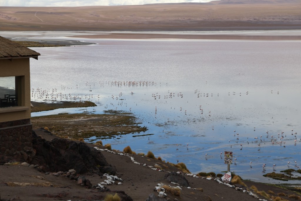 We stayed overnight at a lodge near Laguna Hedionda. In the morning we walked to the lake and saw lots of beautiful Flamingos, with snow covered mountains in the background.