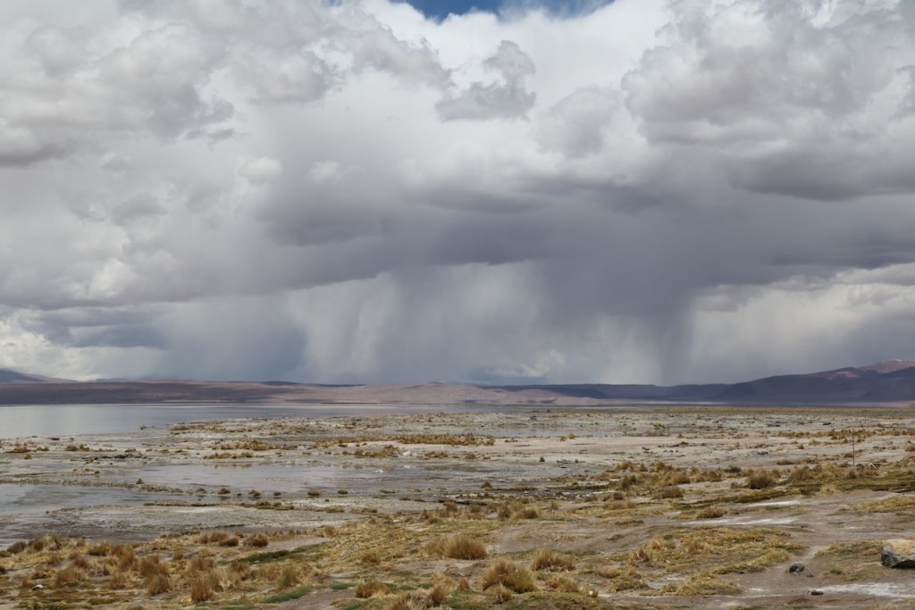 We stopped for lunch at Polques Hot Springs. The view of the rain over the lake was awesome.